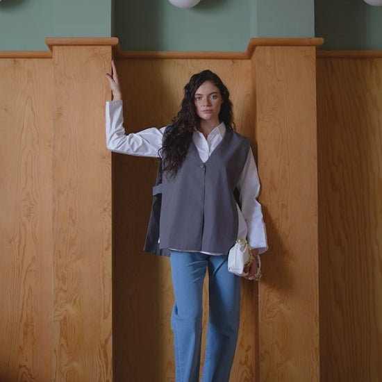 • Items: White Shirt with Grey Overshirt