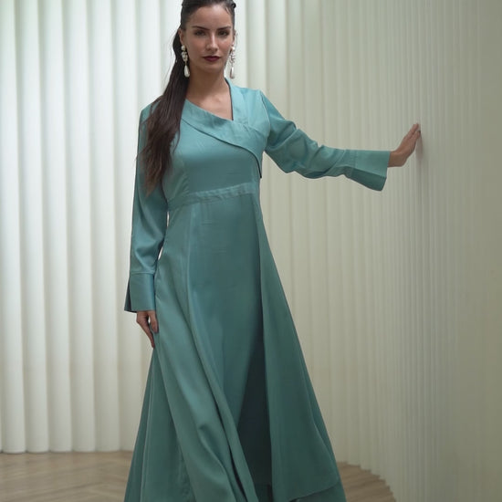 Radiating timeless elegance, this blue silk dress is designed to make a refined statement. Crafted from lustrous silk, it drapes beautifully against the body, offering both comfort and sophistication. The rich blue hue adds depth and luxury, making it perfect for evening events, festive gatherings, or a refined night out. Pair it with statement heels and minimal jewelry for a polished, graceful look.