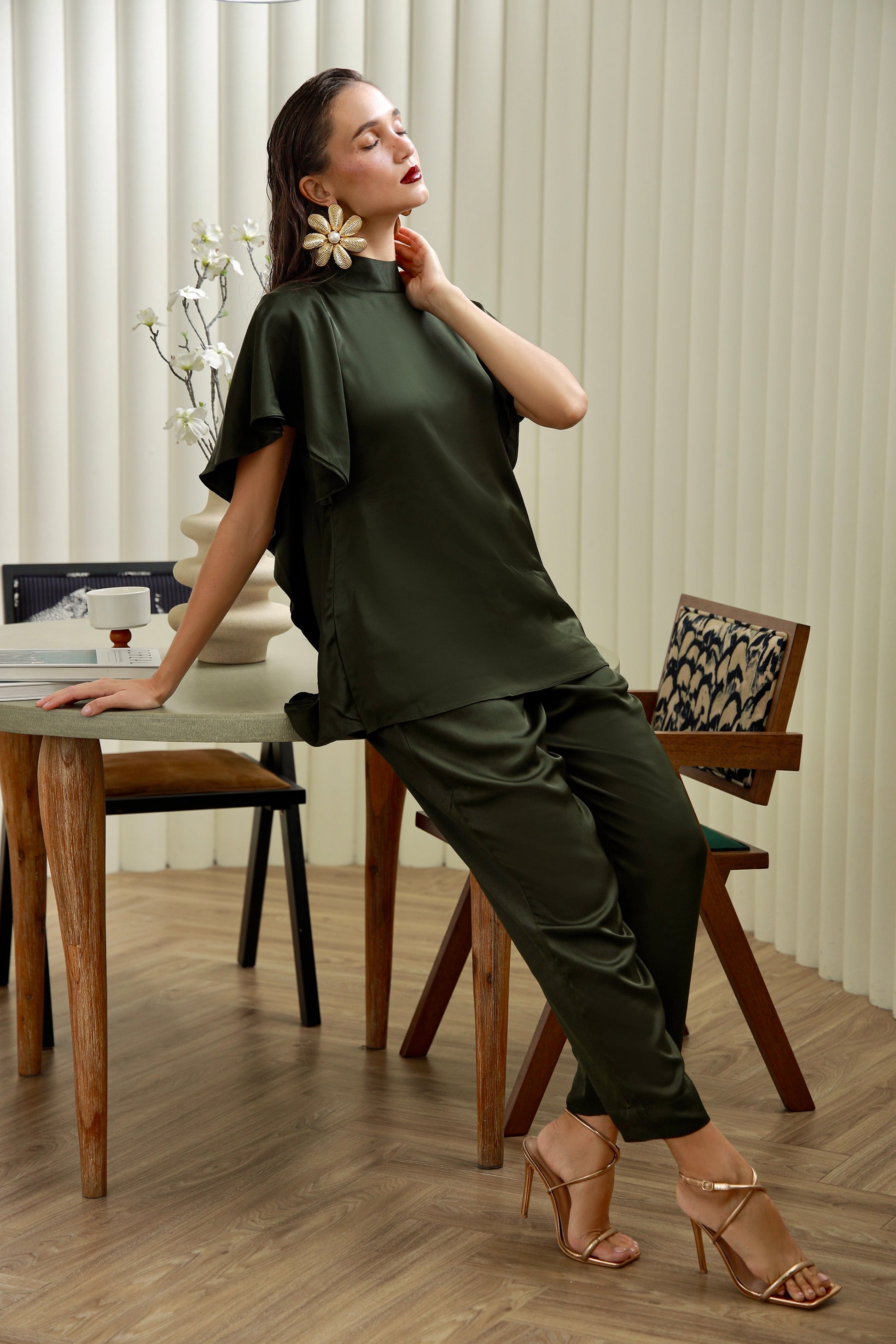 Make a bold yet sophisticated statement with this dark green silk co-ord set. Crafted from premium silk, the set features a flowing silhouette with a natural sheen that enhances its rich emerald hue. Perfect for evening soirées, festive gatherings, or chic daywear, this co-ord offers effortless versatility—wear it as a complete ensemble or mix and match the pieces for endless styling possibilities.