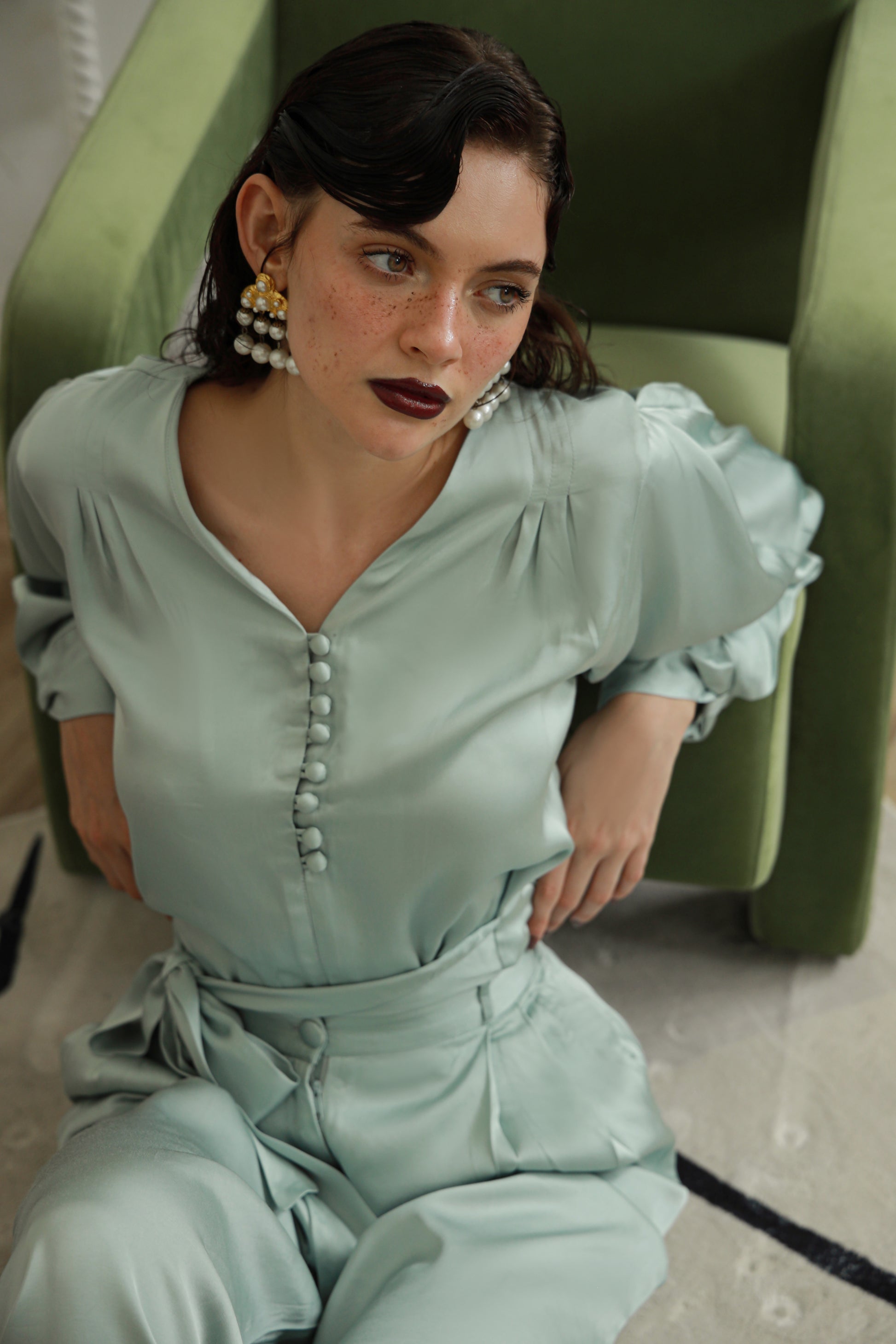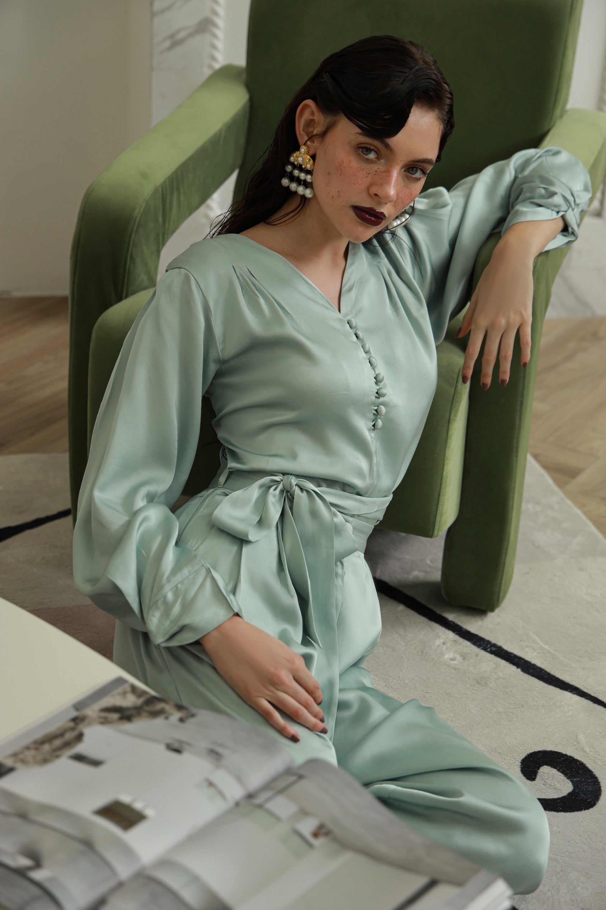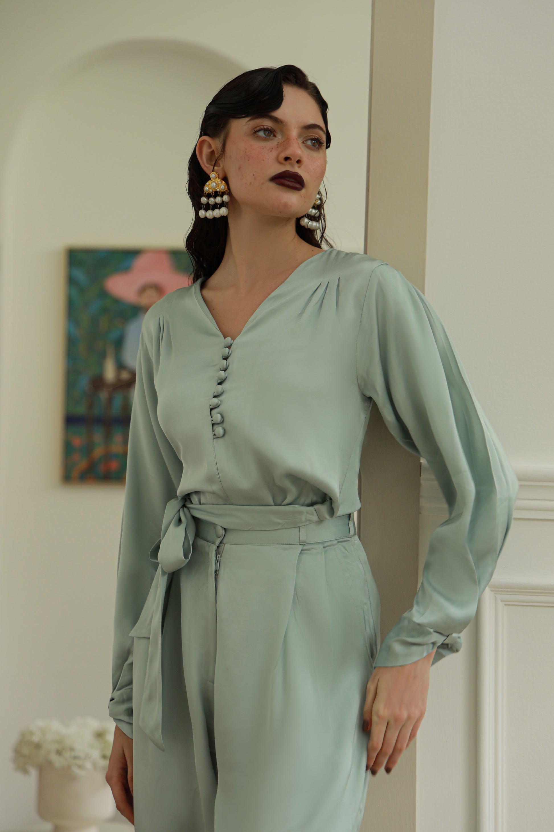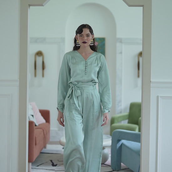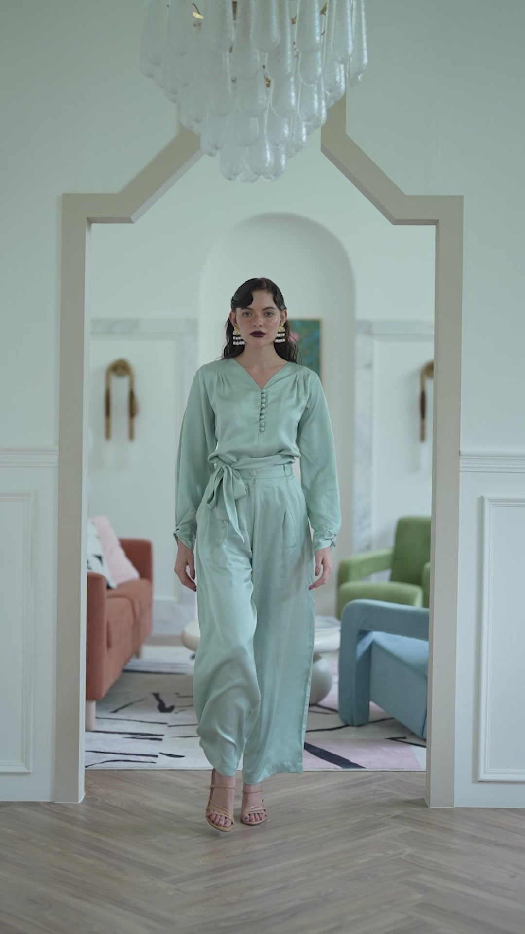 Sophisticated yet versatile, this green silk co-ord set is designed to make a refined statement. Crafted from premium silk, the set flows gracefully with a subtle sheen that enhances its rich green hue. Whether worn as a complete look or styled separately, this ensemble offers endless possibilities—perfect for festive gatherings, evening soirées, or elevated daywear.